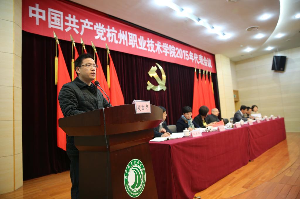 4月9日,中共杭州职业技术学院2015年党员代表会议在行政楼二楼报告厅召开,党委班子成员、全体党代表、非代表党员处级干部参加会议。会议由党委副书记赵一文主持。