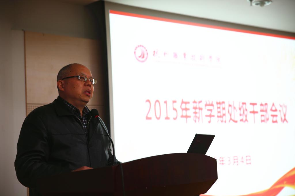 3月4日,我校在行政楼第四会议室举行新学期处级干部会议。学校党政领导班子成员、全体中层干部、常驻学校的二级学院企业方负责人参加会议。会议由校长贾文胜主持。