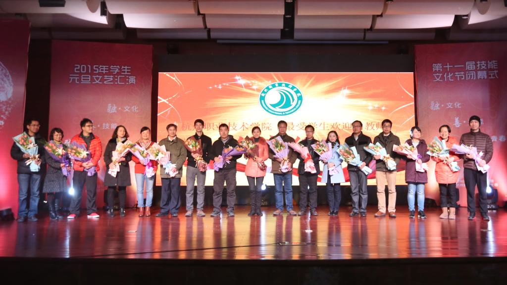 晚会现场进行了2014年度“最美杭职学子”和“最受学生欢迎的教师”的颁奖仪式。安蓉泉、贾文胜亲自为10位“最美杭职学子”颁发证书并送上鲜花,而学生们也为17位“最受学生欢迎的教师”送上鲜花与拥抱,感谢恩师们的谆谆教导。