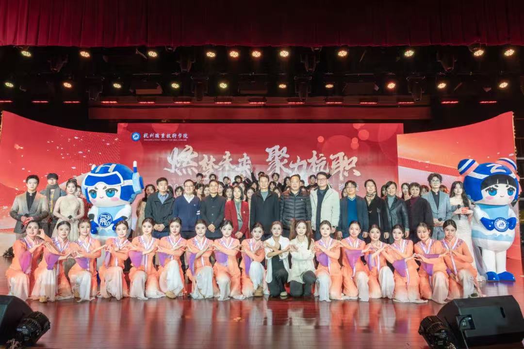 岁序常易,华章日新。12月26日晚,图书馆报告厅内华灯熠熠、气氛热烈,“燃梦未来,聚力杭职”2024年度学生荣誉盛典暨新年晚会隆重举行。校党委委员、纪委书记高云飞,宣传部、教务处、学工部、团委、创业学院、公共基础部等职能部门负责人,各二级学院分管学生工作的书记(副书记),学工办主任、辅导员以及各二级学院学生代表参加本次活动。