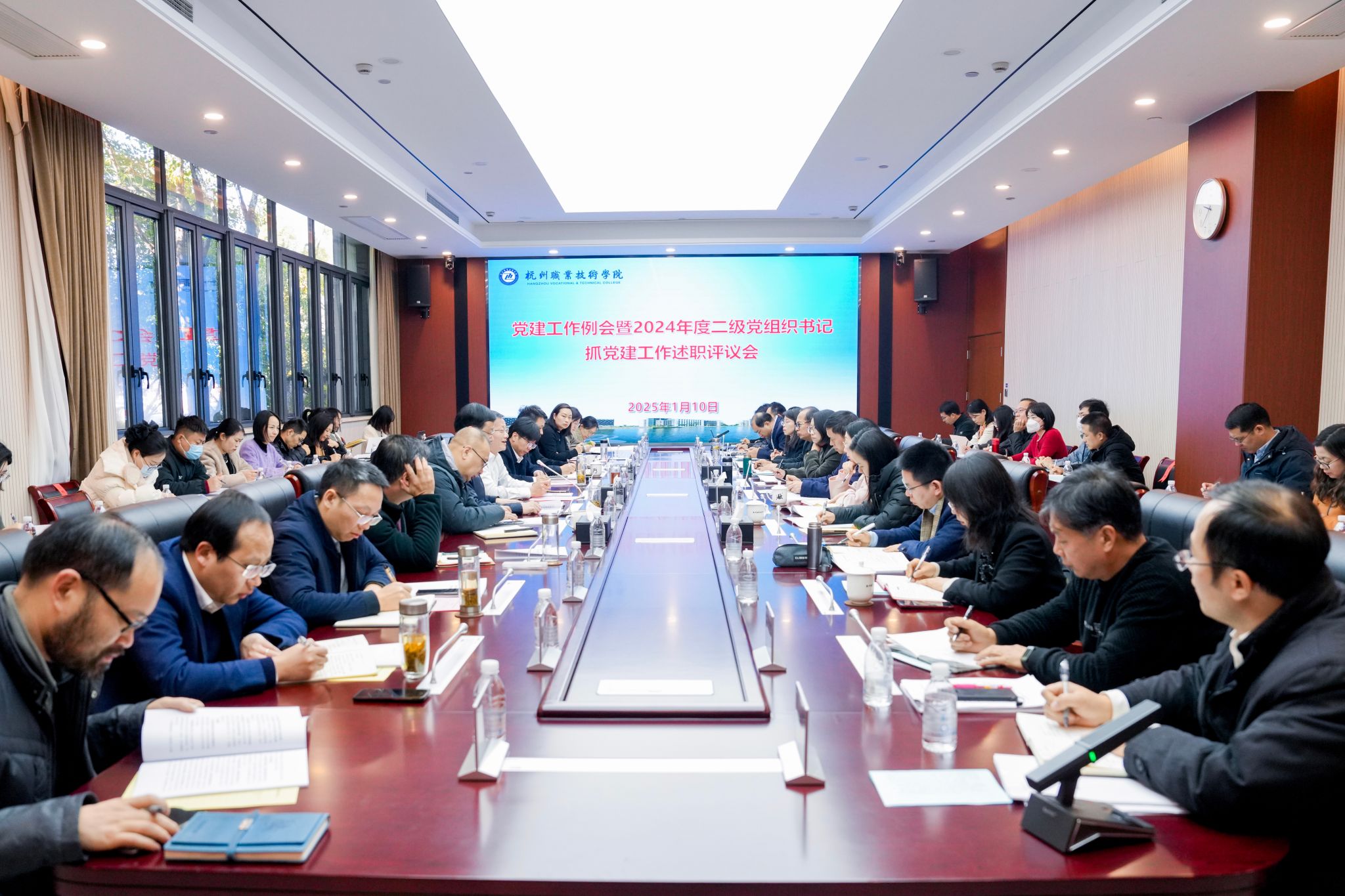 1月10日上午,党建工作例会暨2024年度二级党组织书记抓党建工作述职评议会在行政楼129会议室召开。校党委书记陈文岳、校长徐时清等全体校领导班子成员出席,各党务部门负责人、二级党组织书记、党员代表等参加会议。