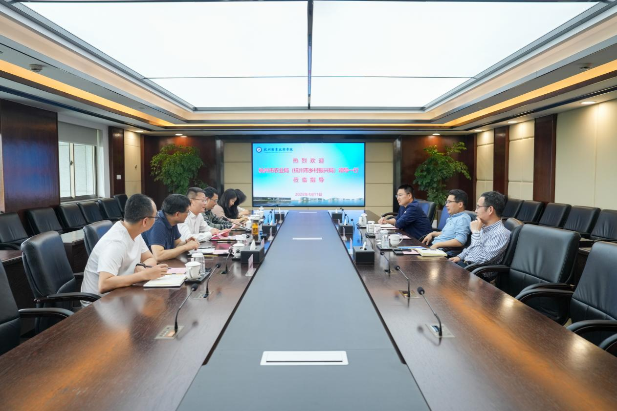 4月11日,杭州市农业农村局(乡村振兴局)发展规划处处长梁大刚、农业农村事务保障中心副主任范明亮一行来访我校。校党委书记陈文岳、副校长楼晓春,商贸旅游学院相关负责人参与接待。梁大刚一行参观了商贸旅游学院,随后双方在行政楼528会议室进行了座谈。