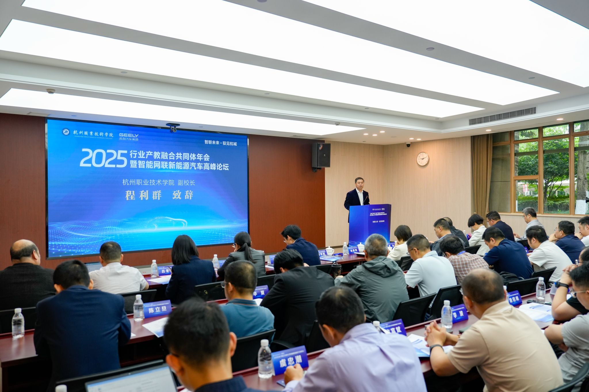 为深化产教融合、赋能产业升级,4月19日,杭州职业技术学院、杭州吉利汽车有限公司共同举办行业产教融合共同体年会暨智能网联新能源汽车高峰论坛。杭州市经信局、教育局、在杭高校、行业龙头企业代表等70余人齐聚一堂,共商产教融合新路径,共绘智能网联汽车产业高质量发展蓝图。