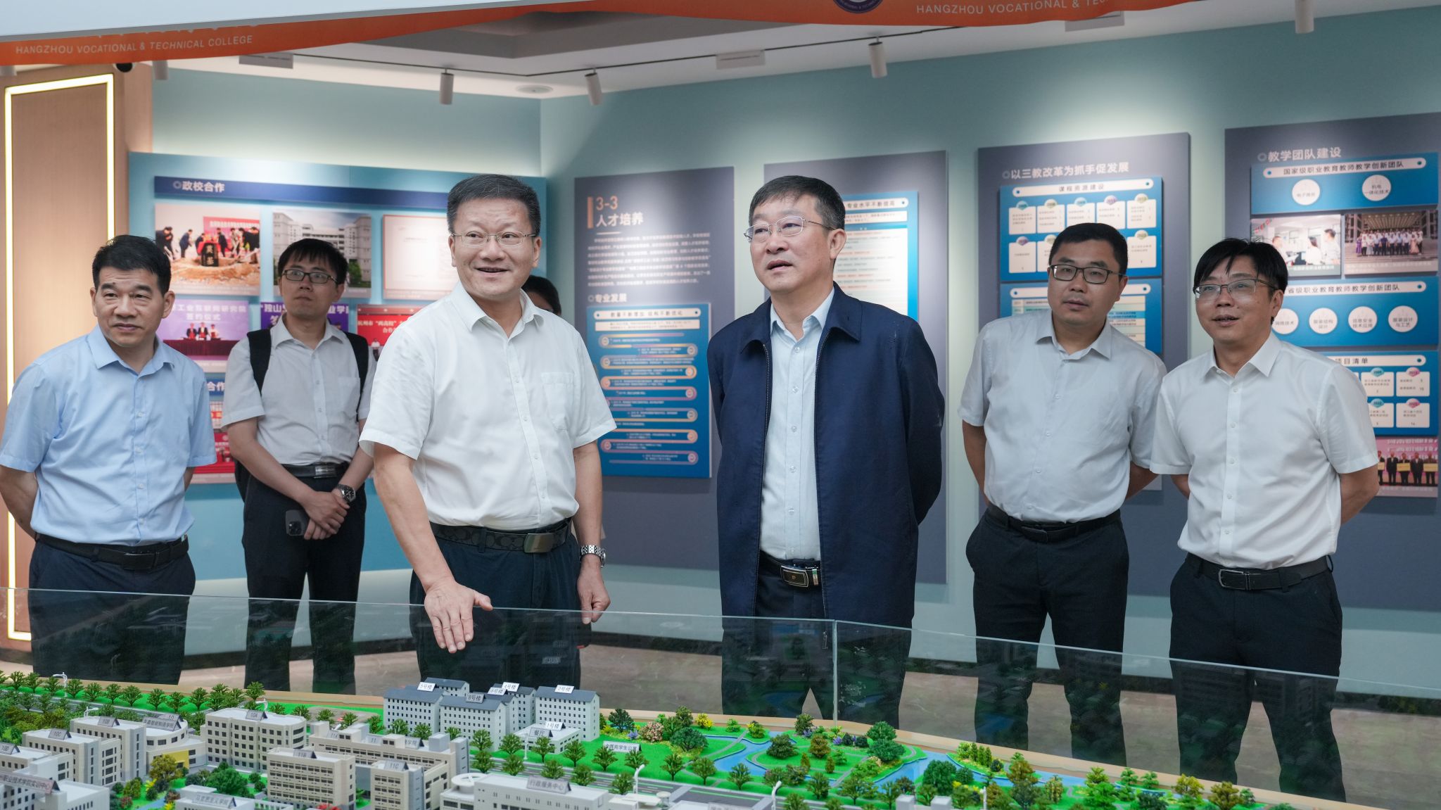李智一行参观了学校校史馆、非遗馆、杭州市公共实训基地,对学校公共实训基地建设和管理的“杭州模式”给予高度评价。随后的调研座谈会在行政楼129会议室进行。李智强调了此次考察调研的背景和目标,指出了今后体制机制设计、体系构建以及未来改革发展的思路。他希望职业院校要牢固树立以服务区域经济社会发展为核心的办学理念,进一步夯实职业教育培养技能型人才的类型定位,深化产教融合、校企合作,在服务国家战略、服务区域产业发展中凸显办学特色和优势,培养更多服务地方和适应产业发展需求的高技能人才,为推进现代职业教育高质量发展贡献力量。他着重强调,杭职院升格为职业本科后,要坚守职业教育培养高素质技术技能人才的类型定位;要紧密对接区域产业发展需求,动态优化专业结构;要科学规划生源结构,针对不同生源群体实施分类培养,精准构建课程体系与育人模式;着力打造高水平技术技能人才培养体系,在深化产教融合、引领职业教育创新发展上展现更大作为。