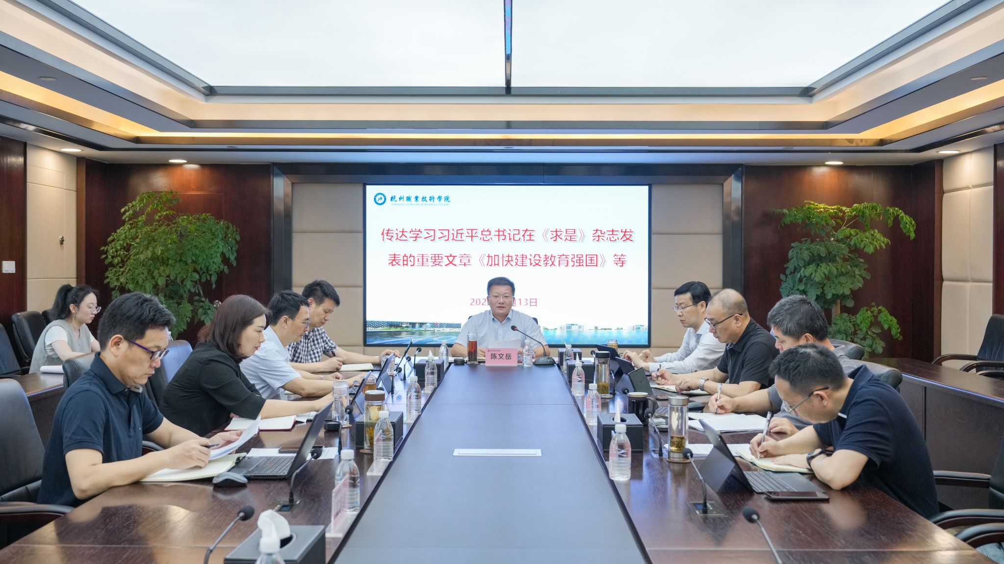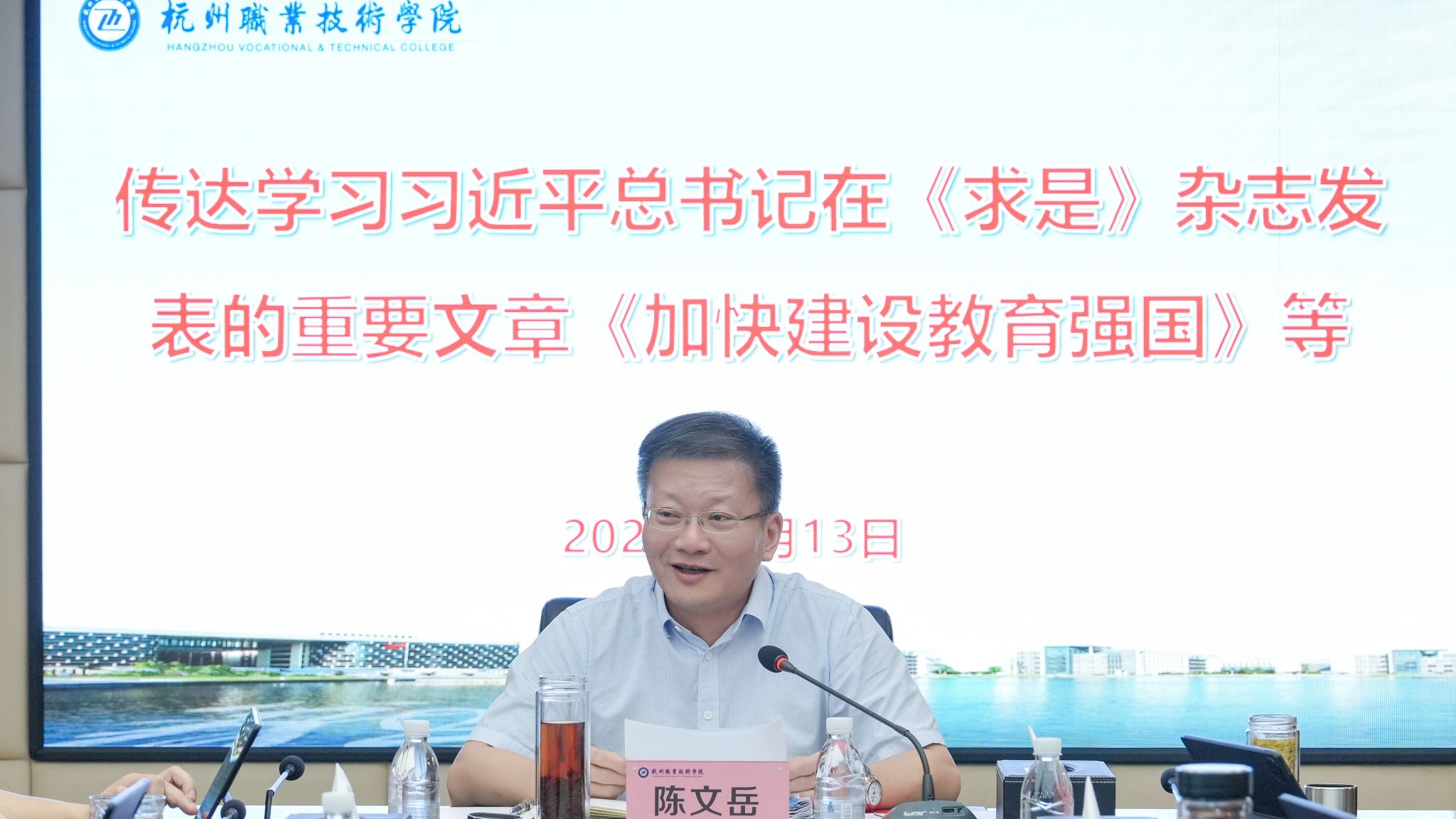 6月13日上午,学校在行政楼528会议室召开党委会“第一议题”学习会,学习传达习近平总书记在《求是》杂志发表的重要文章《加快建设教育强国》,深入贯彻落实习近平总书记关于教育的重要论述和关于职业教育工作重要指示精神,结合学校实际研究落实举措。校党委书记陈文岳主持会议并讲话,其他班子成员结合工作实际开展研讨。