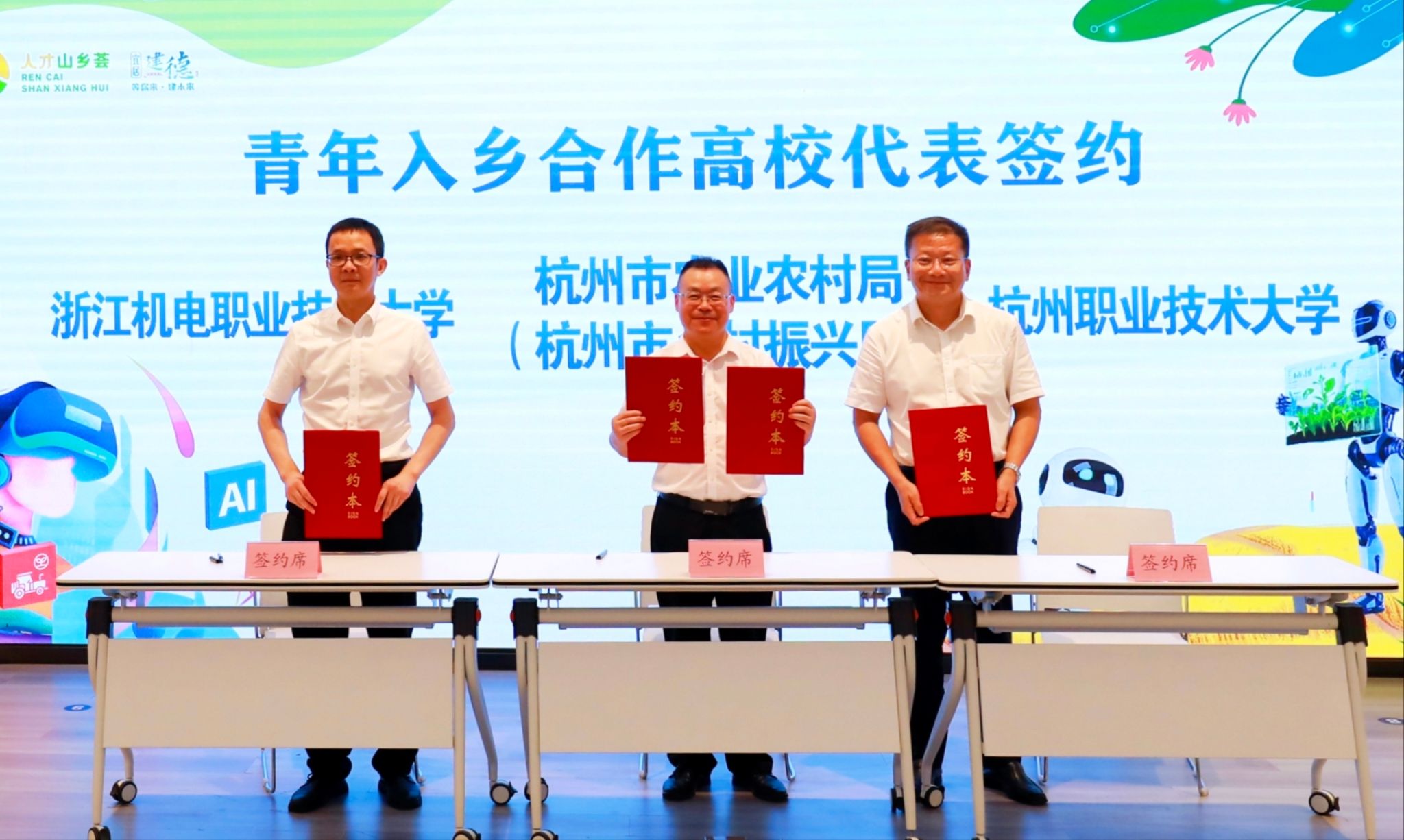 7月25日,以“AI乡村·青创未来”为主题的杭州市青年入乡发展工作现场会在建德市召开。杭州市委常委、组织部部长刘嫔珺出席会议并致辞。校党委书记陈文岳代表学校与杭州市农业农村局共同签署“杭州市青年入乡发展联络站工作协议”