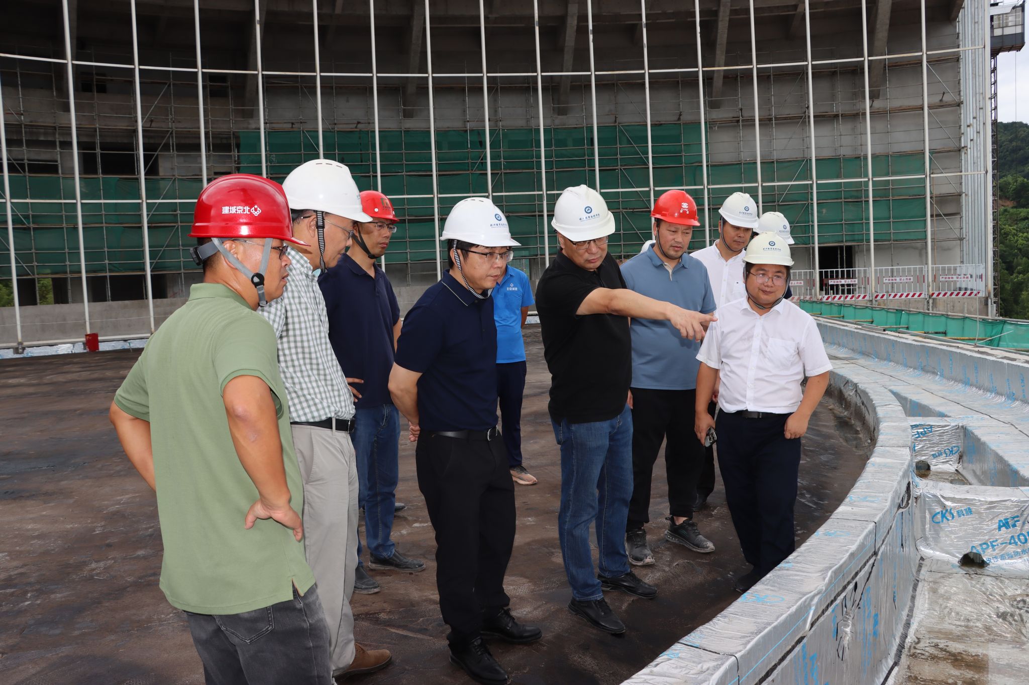 检查组一行实地查看了校区图书馆、教学楼、食堂等施工区域,重点检查了高空作业、临时用电、消防设施、施工机械等关键环节的安全管理措施,听取了学校现场工作组、施工单位和监理单位关于项目建设的汇报,详细了解了工程进度、质量管控及应急预案落实情况。