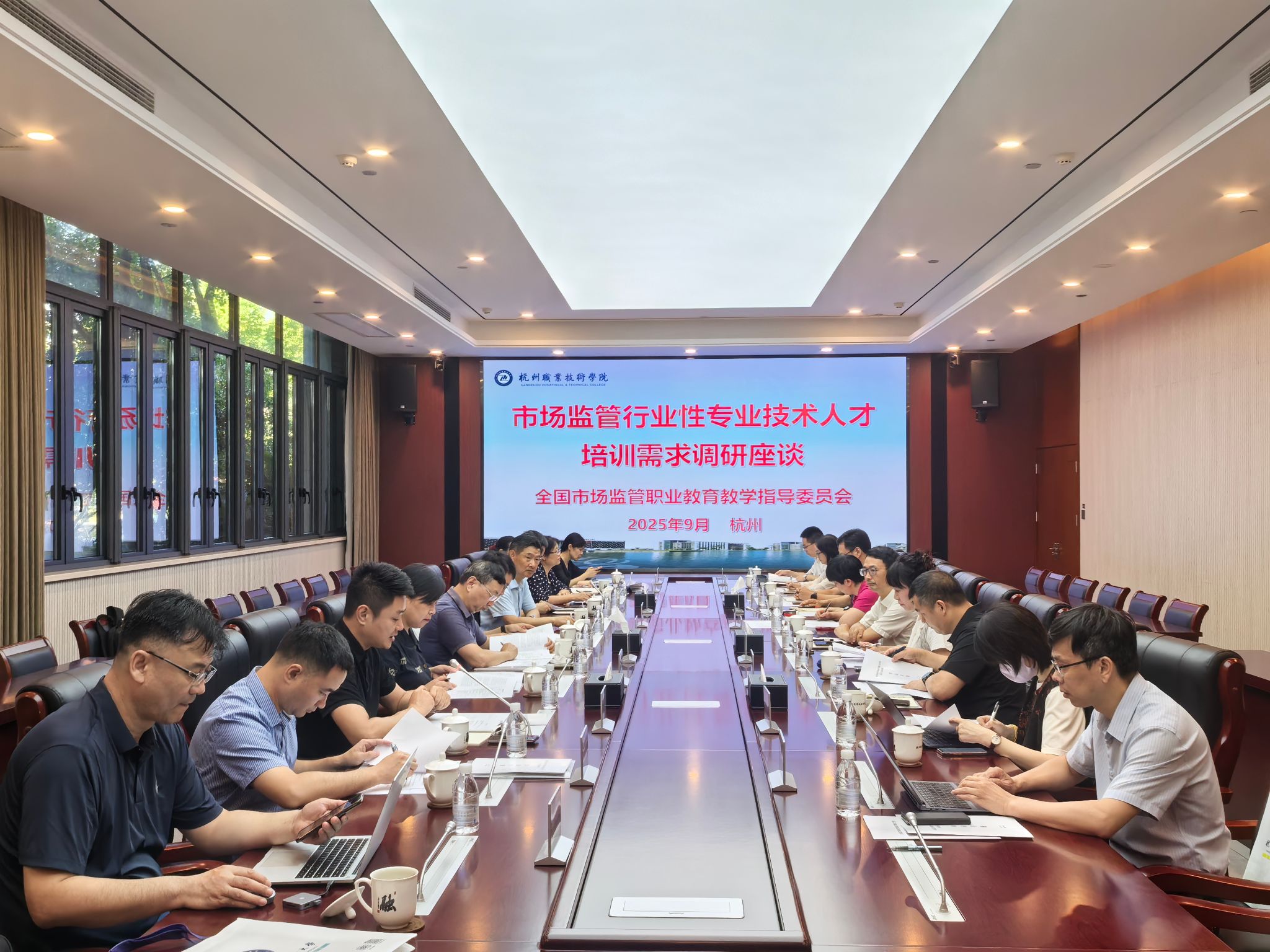 9月8日上午,由国家市场监管行业职业教育教学指导委员会(以下简称 “国家市场监管行指委”)主办的市场监管行业性专业技术人才培训需求调研座谈会,在我校行政楼129会议室顺利召开。国家市场监管总局人事司张少雪,国家市场监管总局专业技术人才开发中心主任、国家市场监管行指委秘书长刘朝晖,中国计量大学原校长、国家市场监管行指委副主任宋明顺,以及国家市场监管行指委各专委会主任、副主任,全国高等职业学校办学能力评价推荐专家等 20 余名行业专家、学者齐聚一堂,共话市场监管领域专业技术人才培训发展方向。