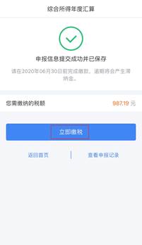 ①如汇缴需补税且不满足免予汇算条件,点击“提交申报”-“立即缴税”选择相应缴税方式完成支付。