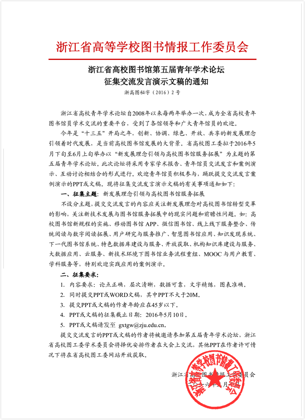 浙江省高校图书馆第五届青年学术论坛征集交流发言演示文稿通知