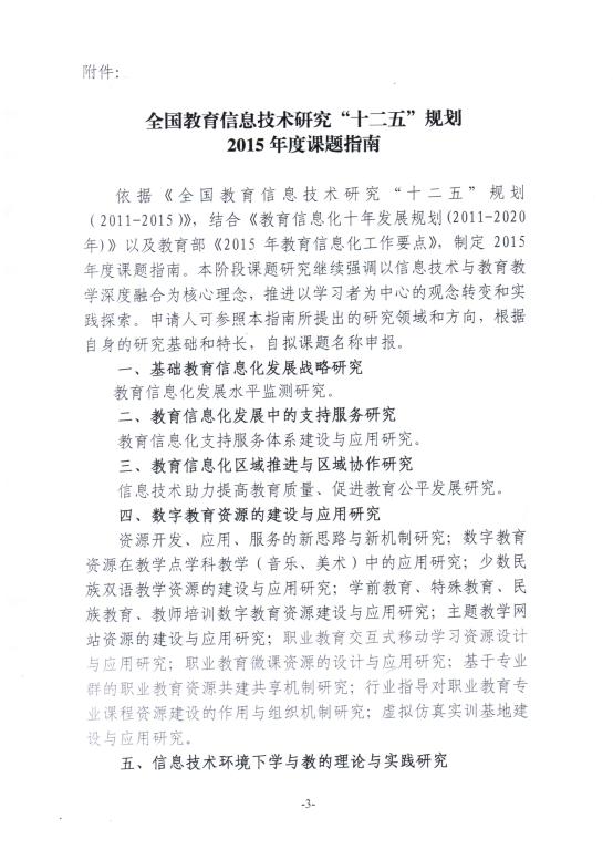 附件:中央电化教育馆关于组织开展全国教育信息技术研究“十二五”规划2015年度课题申报工作的通知