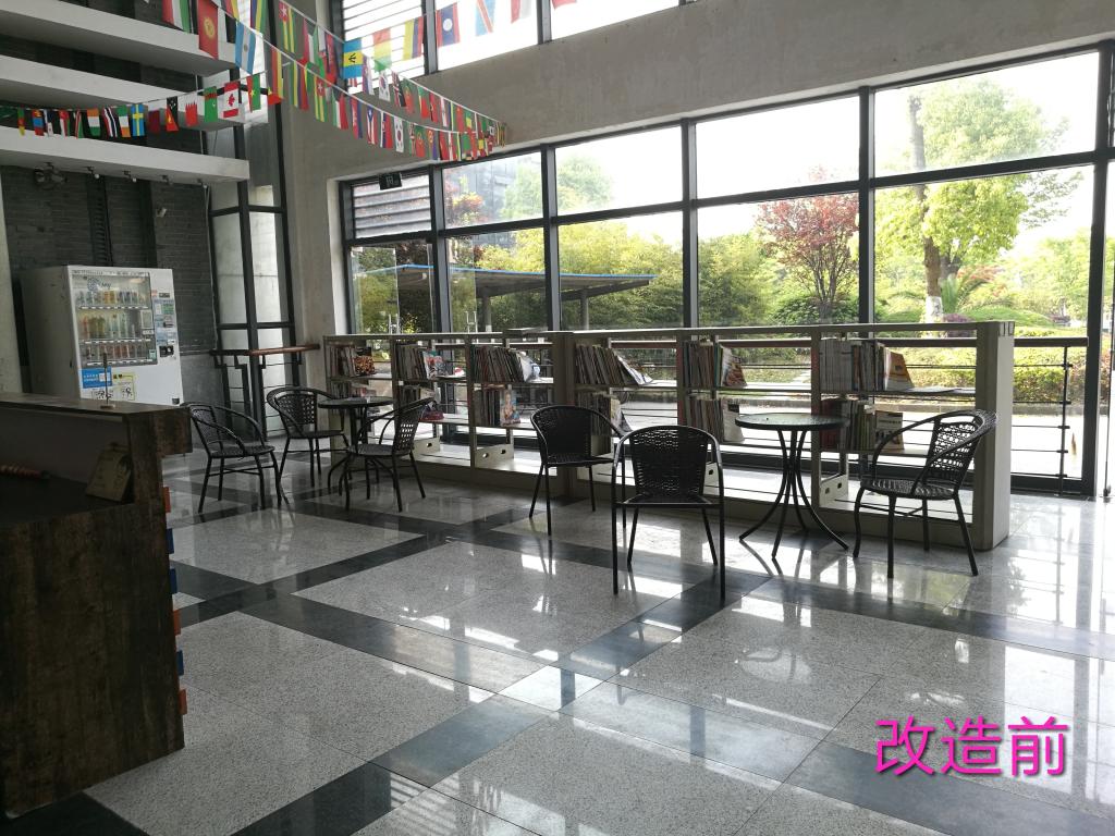 自商贸旅游学院组建以来,分院助困组织圆心舍接管了原6号教学楼中厅的咖啡吧。经过师生共同的调研、策划、商讨,最后决定将此处建设成方便同学们学习生活的室内休憩场所。经过圆心舍同学们前期的清洁整理、整修设计,诚信驿站应运而生。