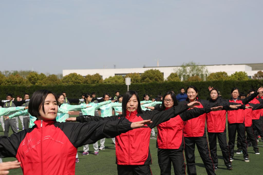 第一个项目是广播体操团体秀。走下讲台,放下教鞭,一身运动装的老师们昂首阔步,踏着整齐的步伐,精神饱满地进场亮相。在昂扬的音乐声中,教工们个个朝气蓬勃,动作规范整齐。一张一弛之间,用广播操表演和迷人的微笑彰显了杭职教职工的青春活力。